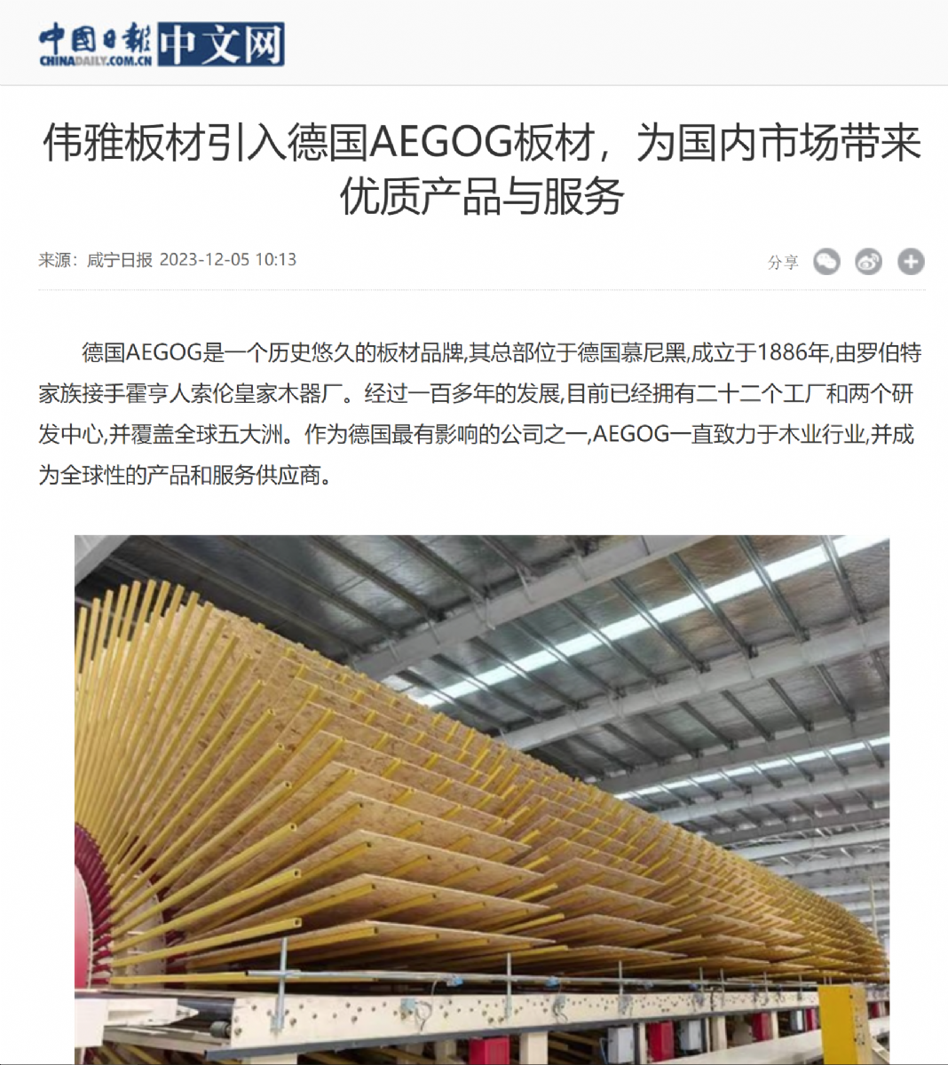 中国日报展现伟雅板材...